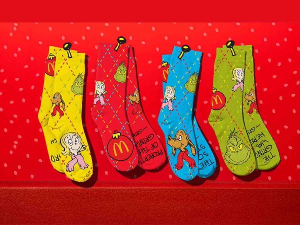 Instead of a toy, this holiday meal includes something unexpectedly sweet: a pair of Grinch-themed holiday socks, available through the McDonald’s app at participating U.S. locations while supplies last.