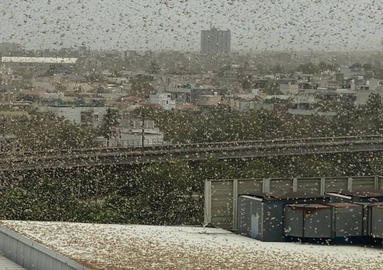Thousands of locusts were seen covering the sky near the Cyber Hub area of Gurugram. Similarly, videos from Delhi’s Chhatrapur showed swarms of locusts flying in.